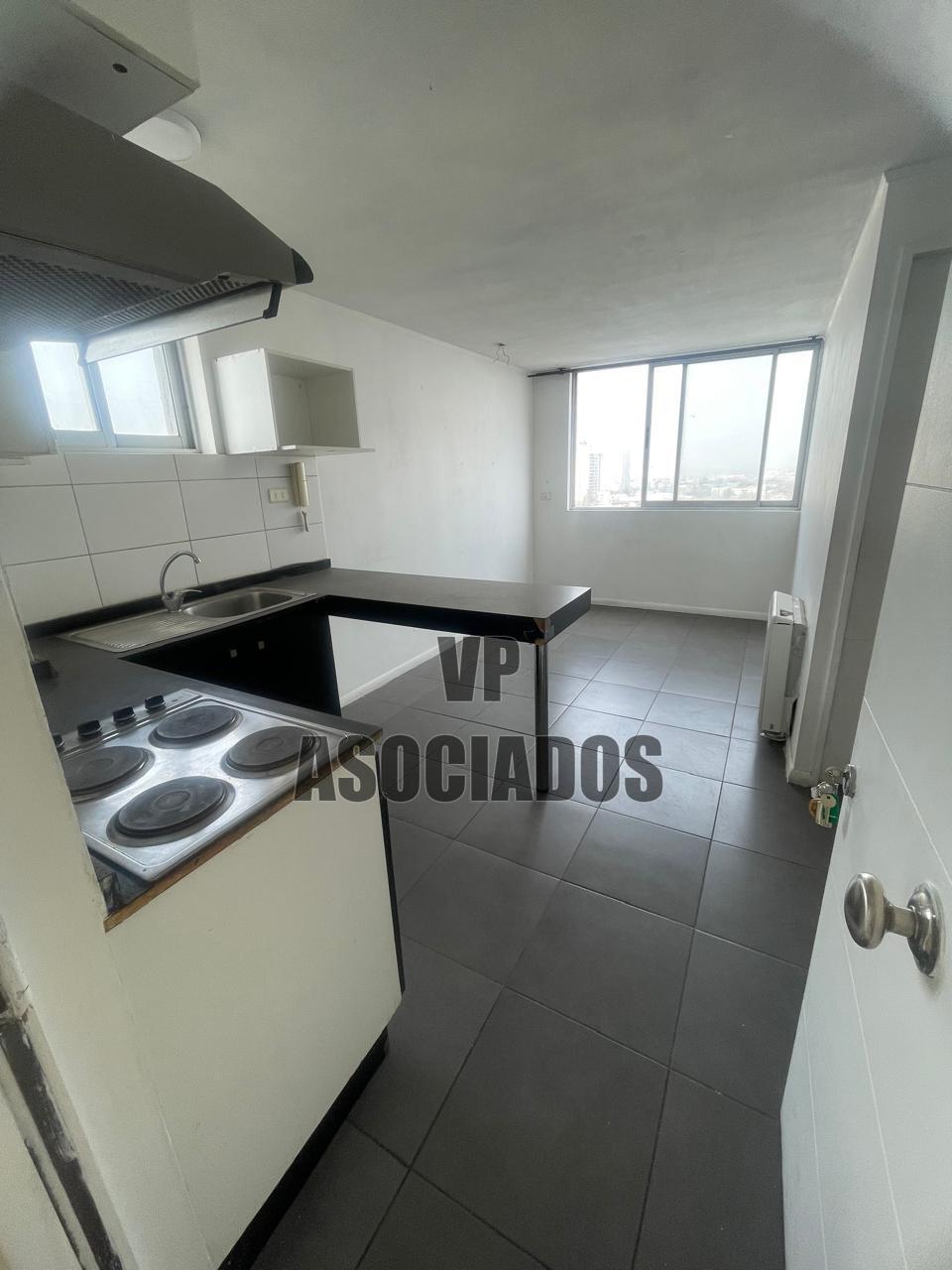 La cocina está integrada al espacio principal, equipada con muebles bajo cubierta y encimera, y cuenta con ventanas que favorecen la ventilación. El departamento dispone de un área destinada a lavandería, ubicada junto a la cocina. No incluye bodegas.