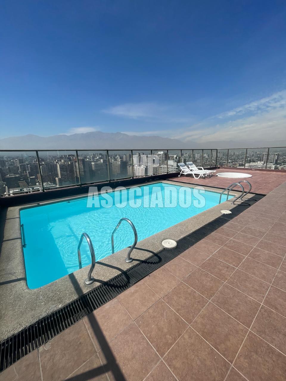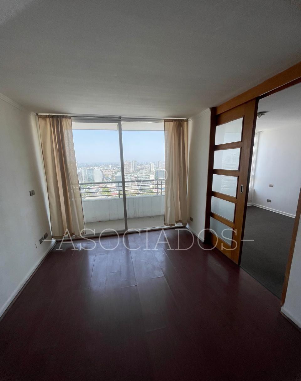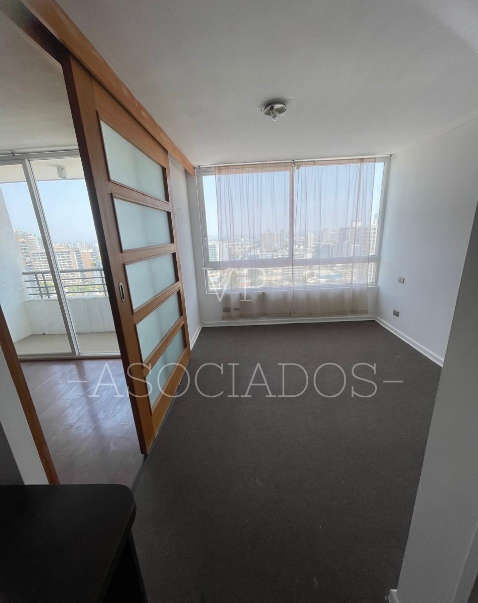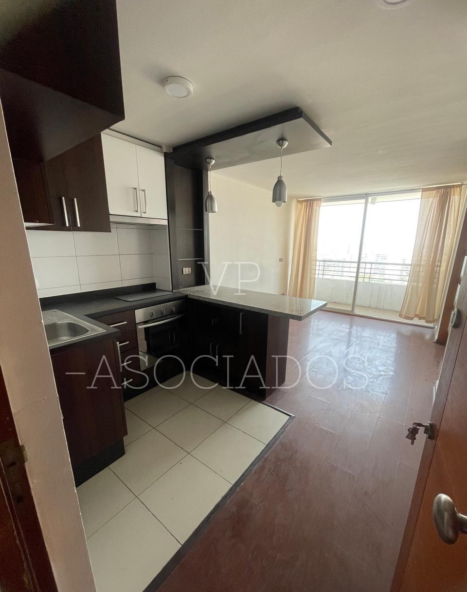 Departamento ubicado en el piso 19, cuenta con cocina americana amoblada y equipada, espacio para instalar lavadora, 1 dormitorio de puerta corredera con baño en suite, living con salida a balcón con vista despejada.