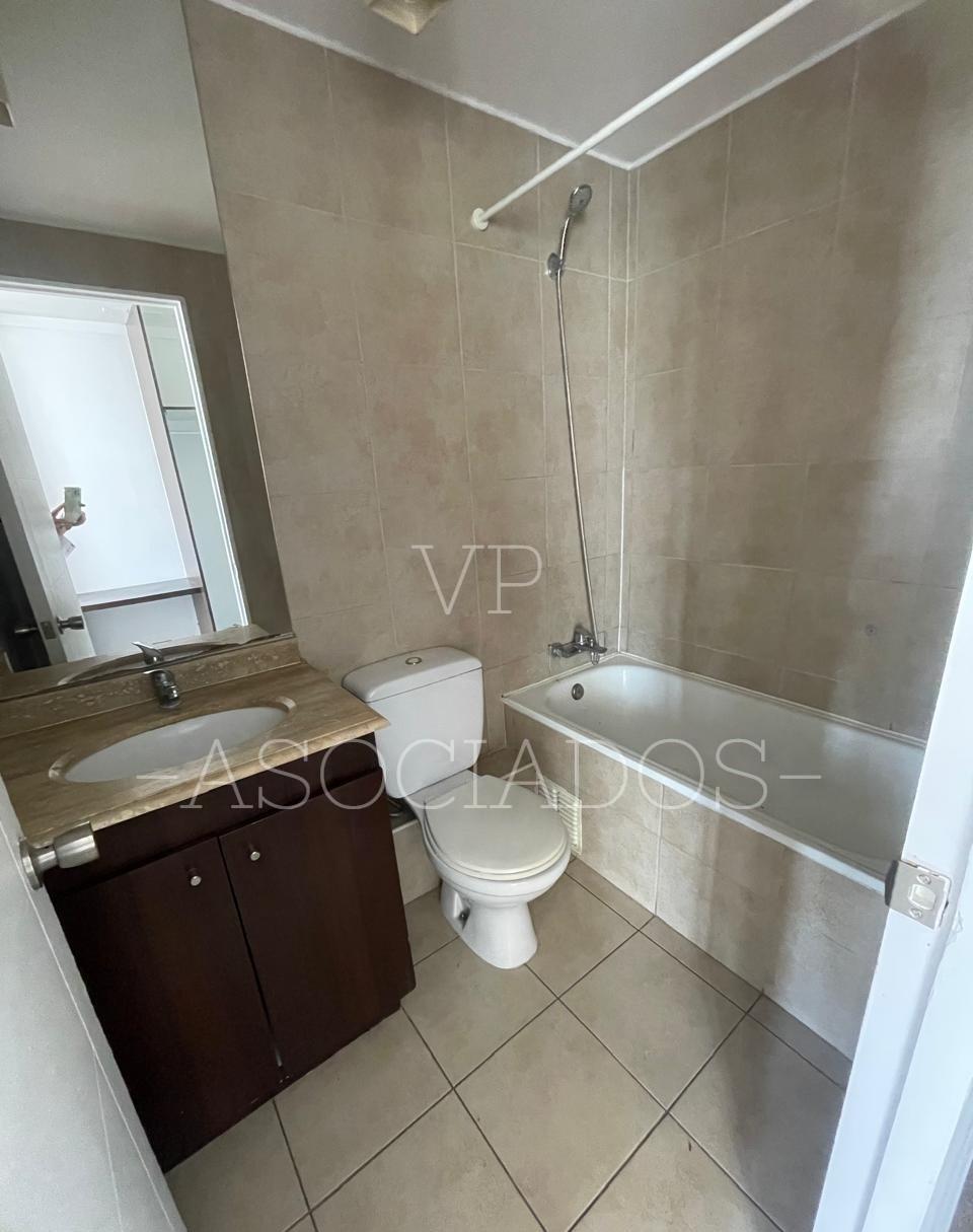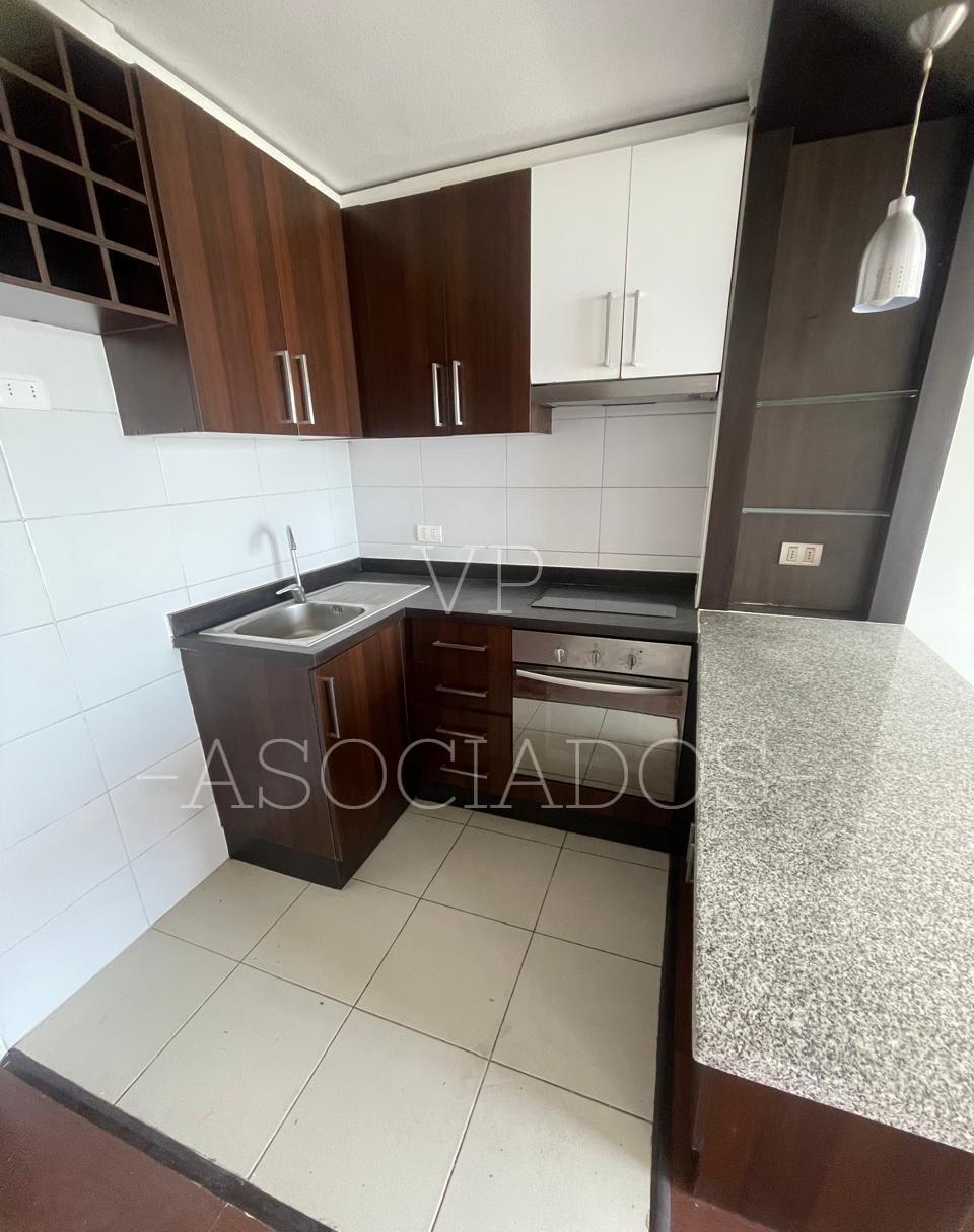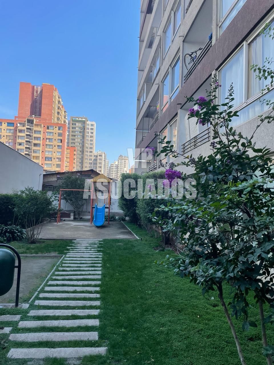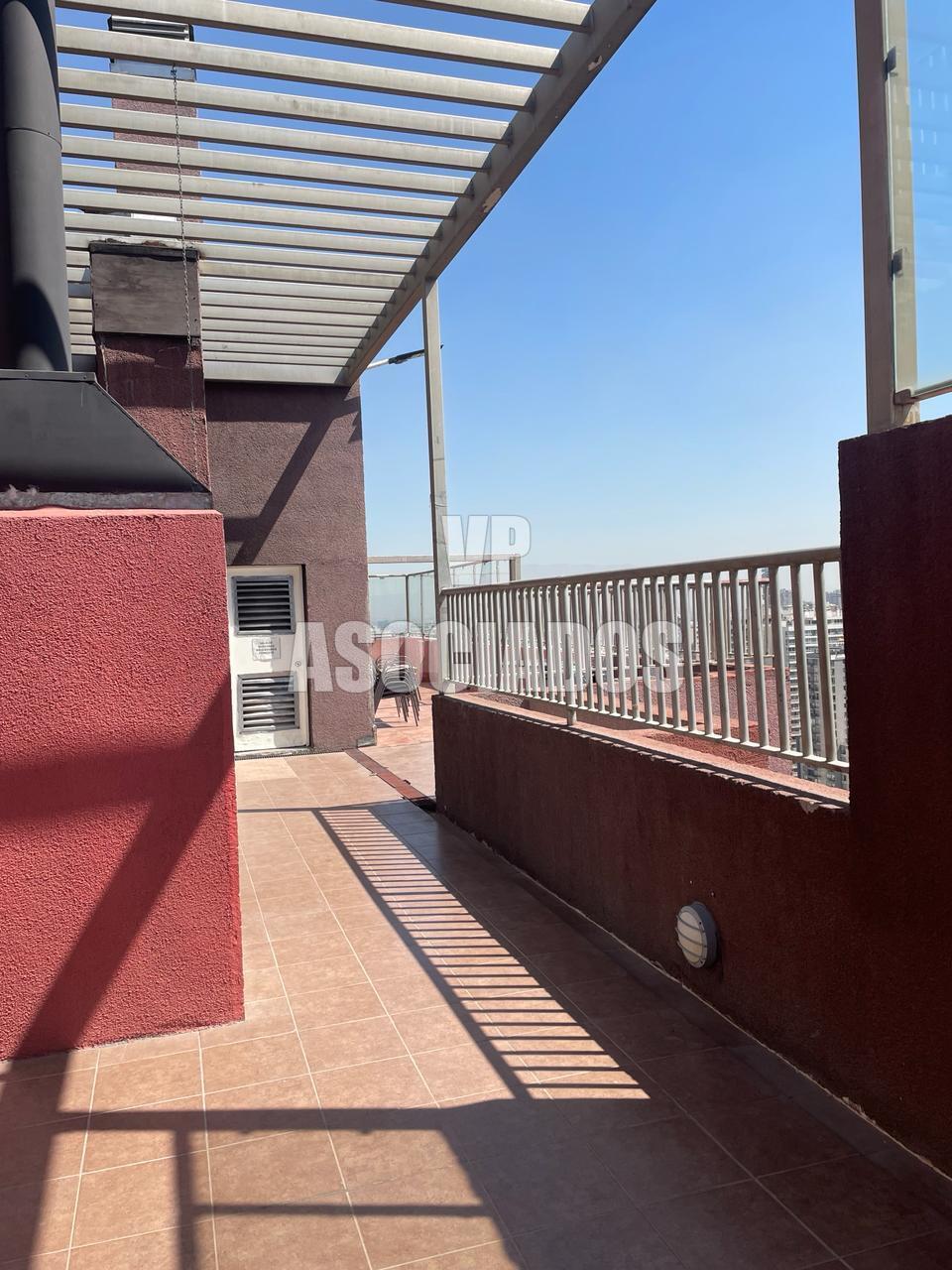 Departamento ubicado en el piso 19, cuenta con cocina americana amoblada y equipada, espacio para instalar lavadora, 1 dormitorio de puerta corredera con baño en suite, living con salida a balcón con vista despejada.