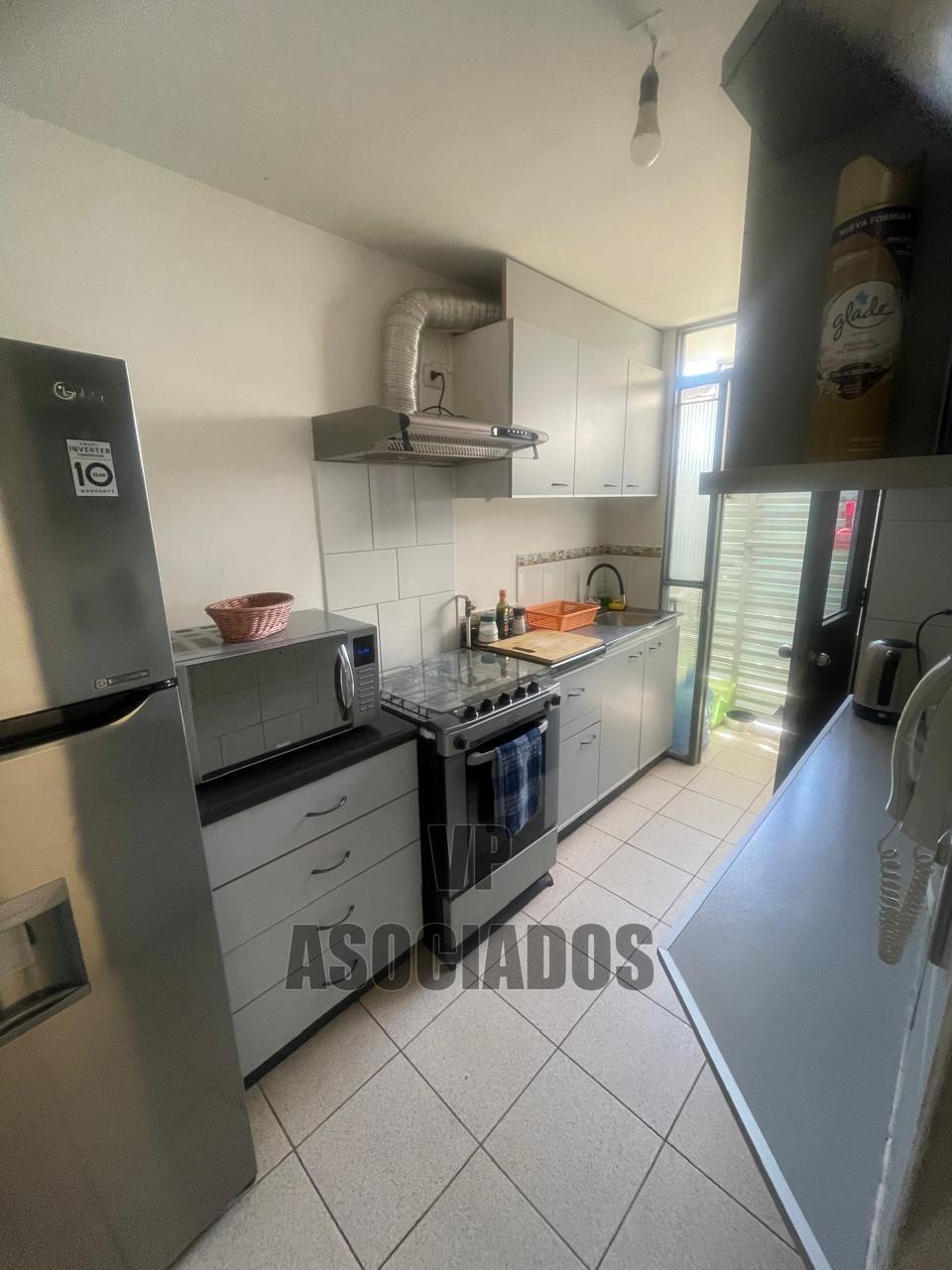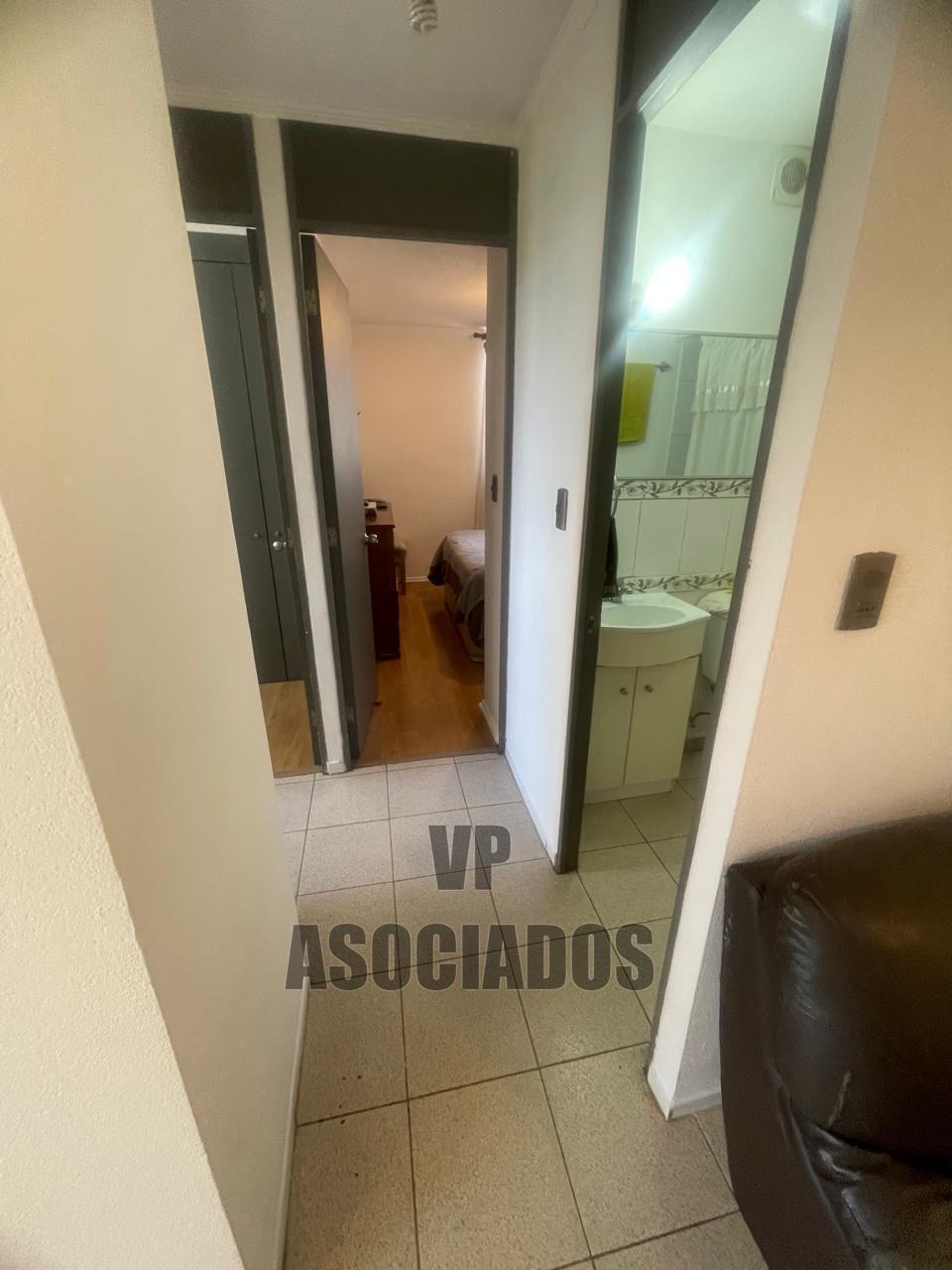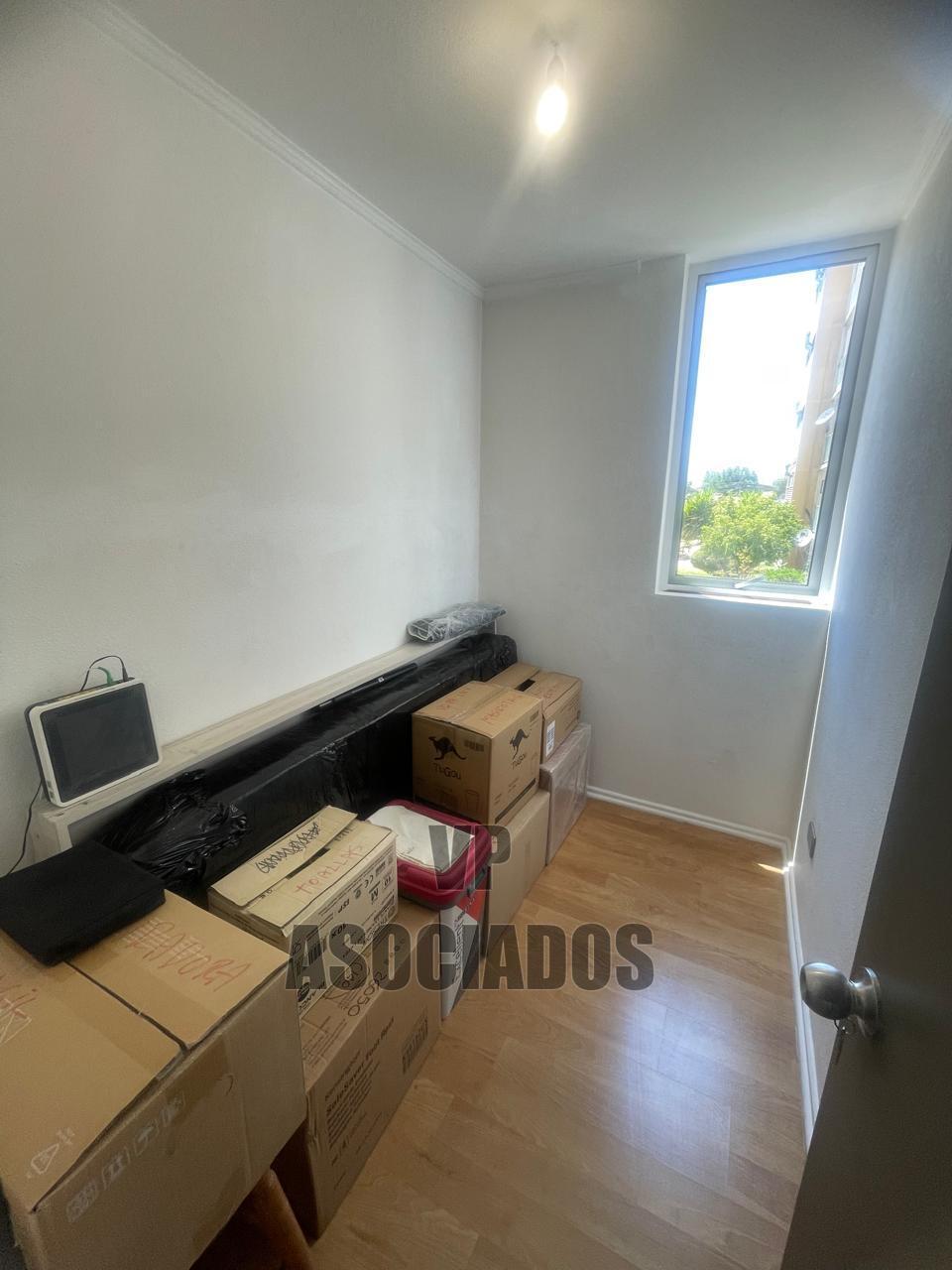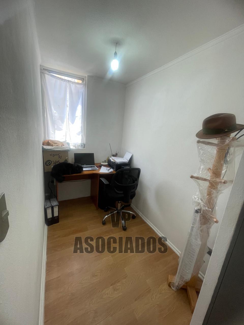 El interior del departamento cuenta con una superficie total y útil de 46 m², distribuidos en tres dormitorios y un baño. El living-comedor se presenta con piso cerámico y acceso directo desde la entrada principal. La cocina está equipada y cuenta con ventana al exterior, lo que facilita la ventilación y la iluminación natural. El baño incluye lavamanos, inodoro y ducha, con terminaciones funcionales y espacio suficiente para el uso diario. Los dormitorios tienen piso flotante y ventanas que aportan luz natural. Uno de los dormitorios está acondicionado como oficina, mientras que otro se utiliza como espacio de almacenamiento. El dormitorio principal dispone de clóset empotrado y espacio para cama de dos plazas. El departamento permite la tenencia de mascotas, lo que lo hace adecuado para quienes buscan un hogar pet-friendly.